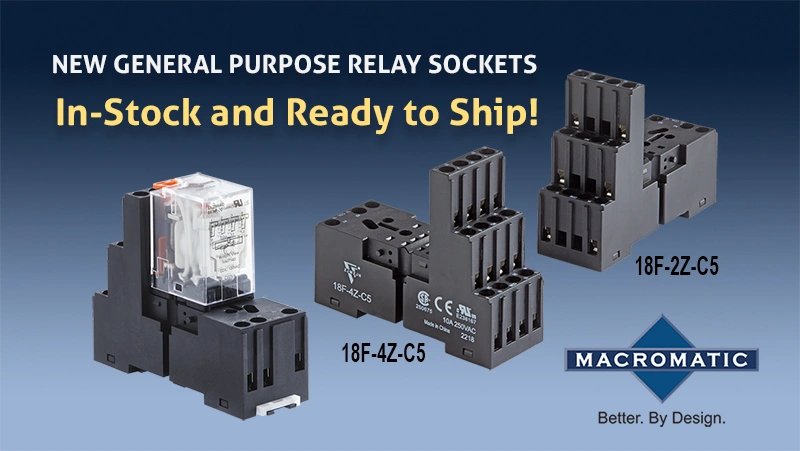 New Tower-style sockets are now in stock and ready to ship. Models with -C5 suffix, used with our GB Series Blade Terminal Relays, can be DIN-Rail or screw mounted. The tower configuration provides solid mounting and can be used with a plastic retainer (GB-PR). The design provides better finger protection.