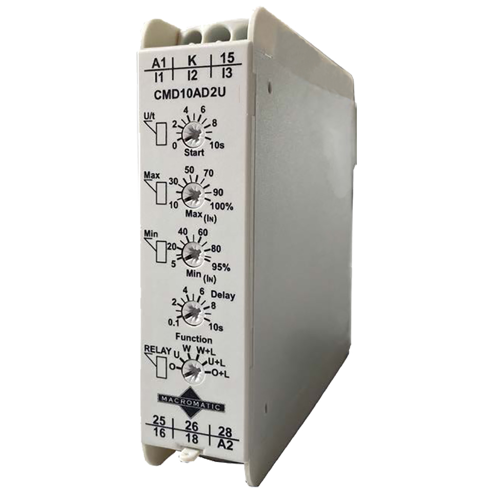 Multifunction CMD Series Relays monitor single phase AC and DC for over-current or under-current conditions. A band (window) function monitors within a maximum and minimum current limit. Each function can be set to operate in latch mode.