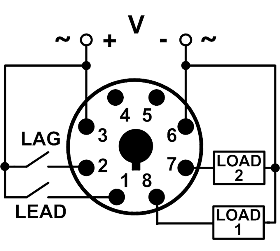 LED marked “LOAD 2” is ON. When the LEAD Switch closes, it turns on LOAD 2. If the LAG Switch closes, it will energize LOAD 1. When the LAG Switch opens, LOAD 1 is turned