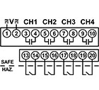Each ISD Series product consists of 4 intrinsically safe inputs and 4 corresponding electromechanical relay outputs. With input voltage applied, the V LED will be ON (GREEN) to indicate power is applied. When the input device is closed, the input LED is ON (GREEN). When the output relay is energized, the output LED is ON (ORANGE).