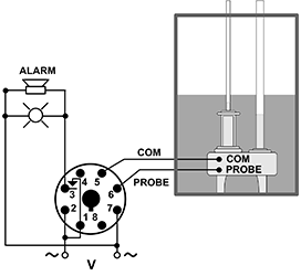 Two wires from the relay are connected to a resistance-sensing probe in the pump seal cavity and the grounded motor housing or across two probes to monitor for seal leakage using a low-voltage DC signal. If the seal starts to leak,