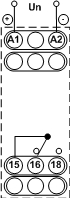 As long as the monitored voltage (Un) remains within the OVER (Umax) & UNDER (Umin) voltage settings, the internal relay stays energized. If the monitored voltage falls outside this range, the relay will drop-out. The Umax dial sets the upper limit per the Overvoltage range of the product. The Umin dial sets the lower limit at 30-95% of the upper setting. This product has an adjustable time delay on drop-out of 0.1-10 seconds (t) to prevent nuisance tripping.